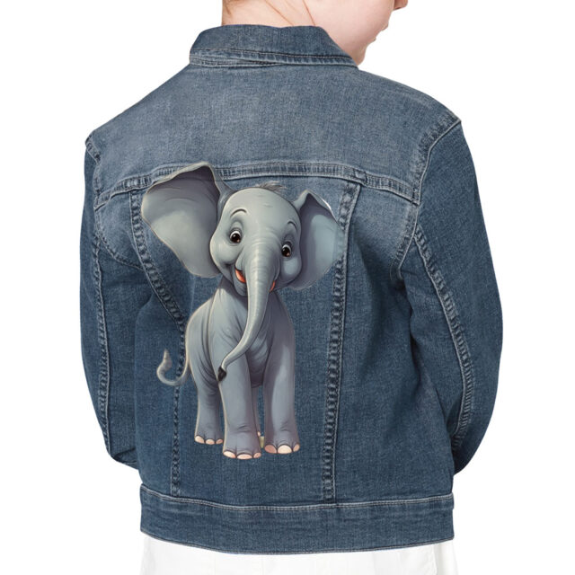 Cartoon Elephant Kids’ Denim Jacket is made from a cotton blend fabric and has the perfect fit that’s ‘just right.’ It’s lighter than a winter coat, so works a treat layered over fleece and sweaters.