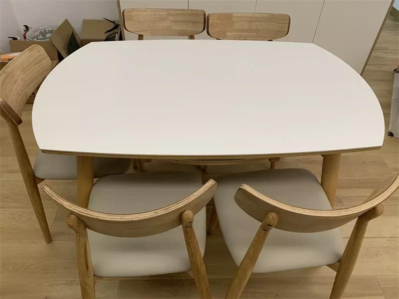 I'm so pleased with my purchase! It's ideal for my small space but expands to accommodate more guests. The minimalist design is absolutely beautiful, and the table is both sturdy and easy to care for. Assembling it was straightforward and enjoyable.