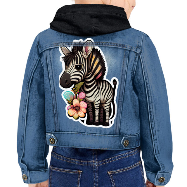 Floral Zebra Toddler Hooded Denim Jacket is made from a cotton blend fabric and has the perfect fit that’s ‘just right.’ It’s lighter than a winter coat, so it works a treat layered over sweaters. To complete the outfit, team with jeans and leggings, and finish off with adorable boots.