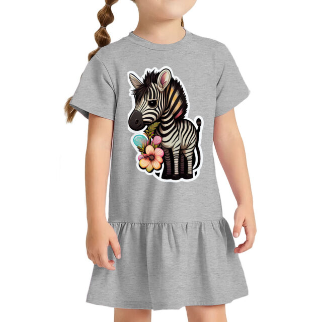 The design is printed on a soft, comfortable, 100% combed ringspun cotton short-sleeve dress. Floral Zebra Toddler Rib Dress will become a staple in your child’s wardrobe.