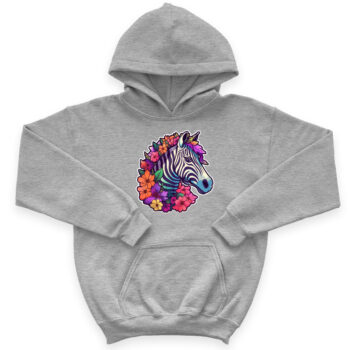Cute Zebra Kids’ Sponge Fleece Hoodie – Floral Kids’ Hoodie – Printed Hoodie for Kids