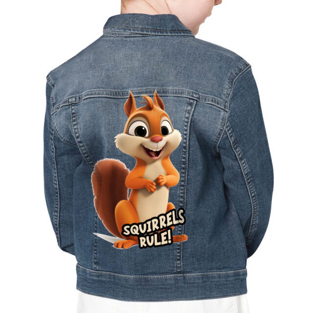 Trendy jean jacket for kids is designed with regular fitted style and is comfortable to wear. Squirrels Rule Kids’ Denim Jacket is perfect for daily wear, party, holiday, travel, school, outdoor activities, sports, and birthdays, it is also a great gift for kids.